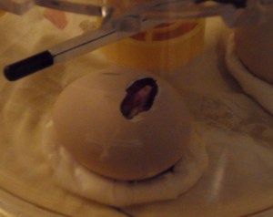Kyckling! Exakt 21 dagar sedan äggen lades i äggkläckaren. Och här kommer nu första bidraget till hönsflocken.