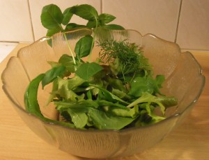 Idag var det dags för första skörden av sallat, ruccola, dill och basilika. Och gott var det även om det var en liten skörd.