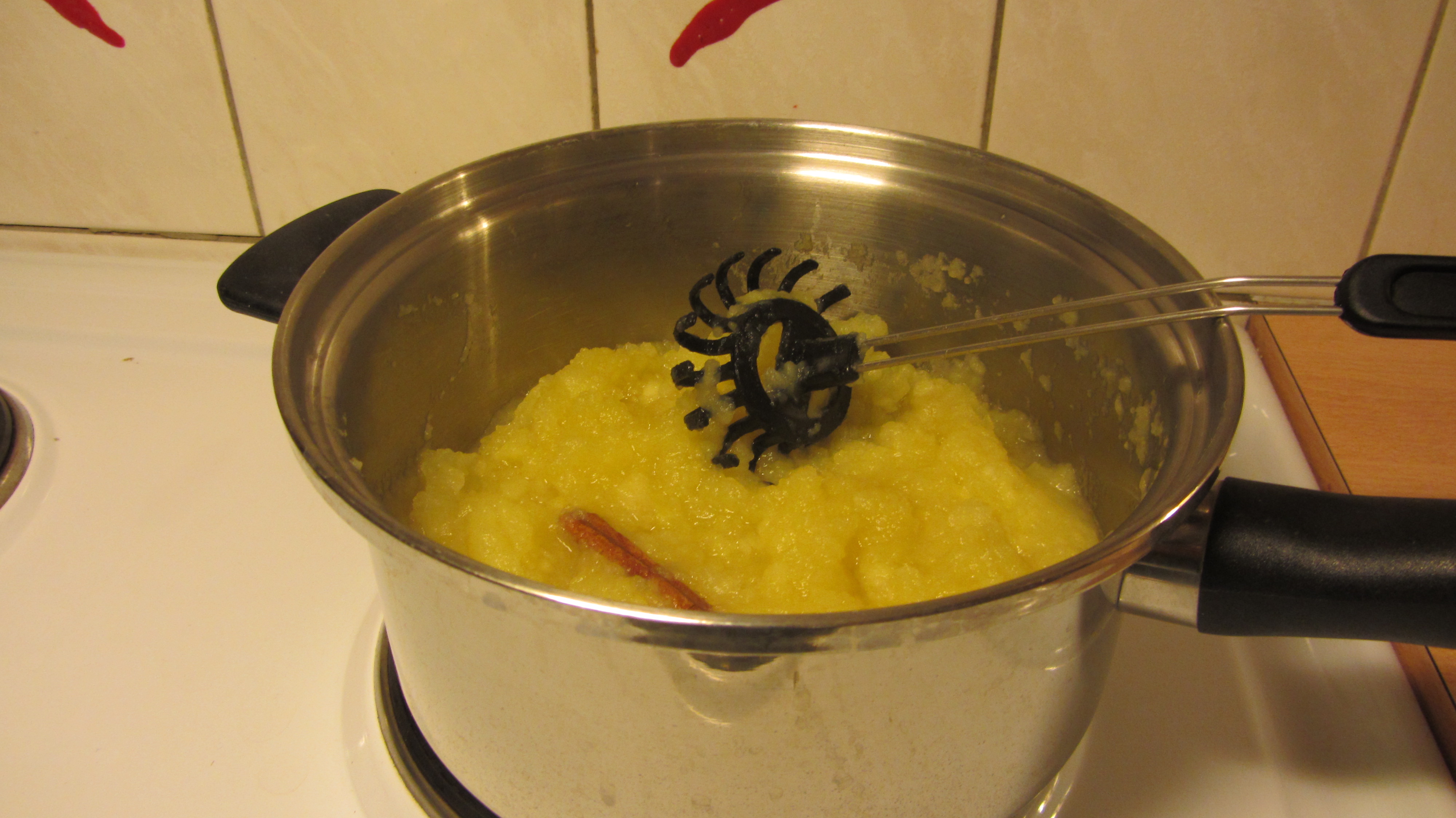 Mosa äpplena så mycket du vill, perfekt hade varit en sån där potatisstöt, men det har jag inte så jag tog en visp.