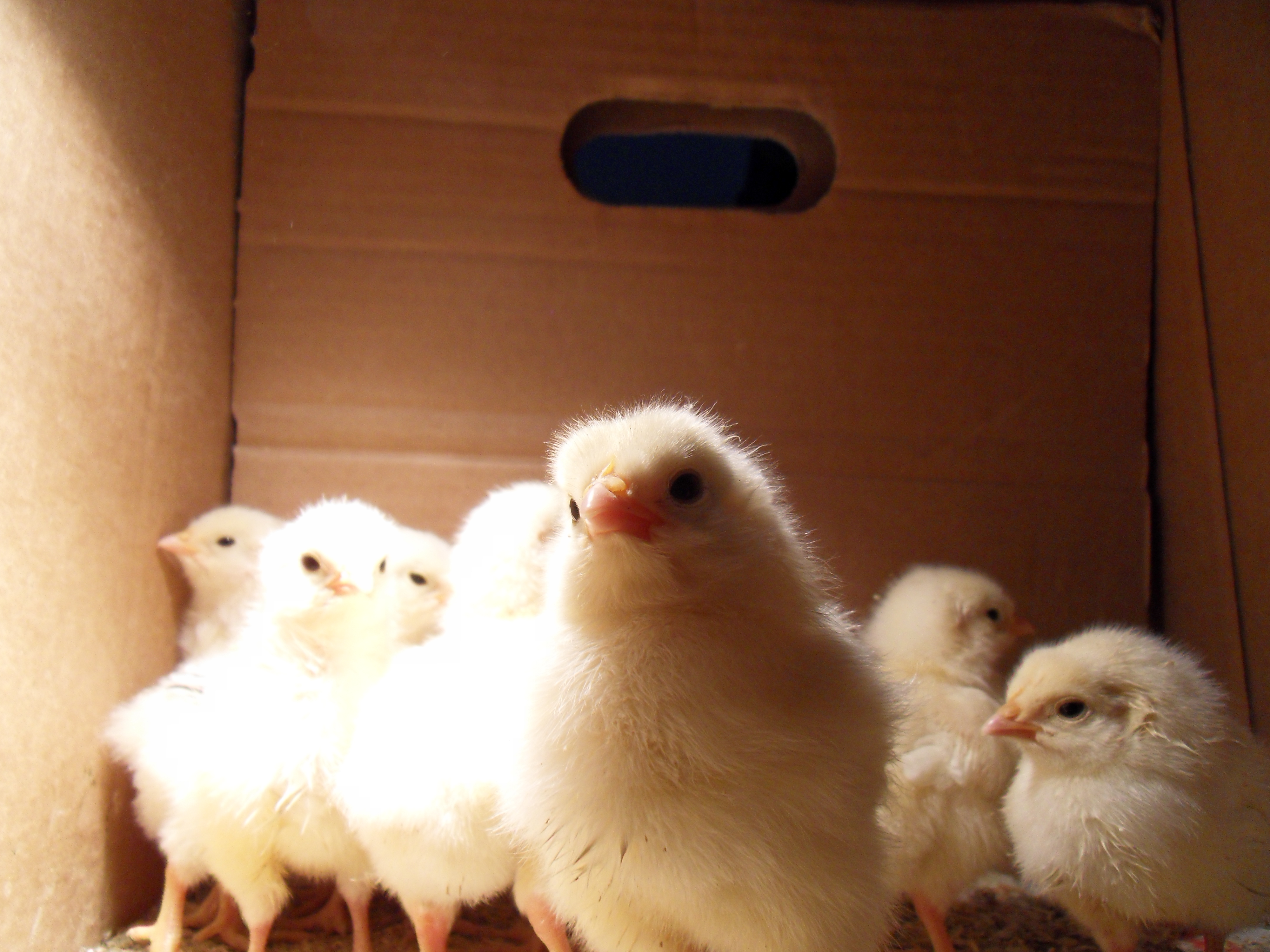 Här är fortfarande i sin låda på kontoret, jag flyttade ut dem till hönshuset nu i helgen.