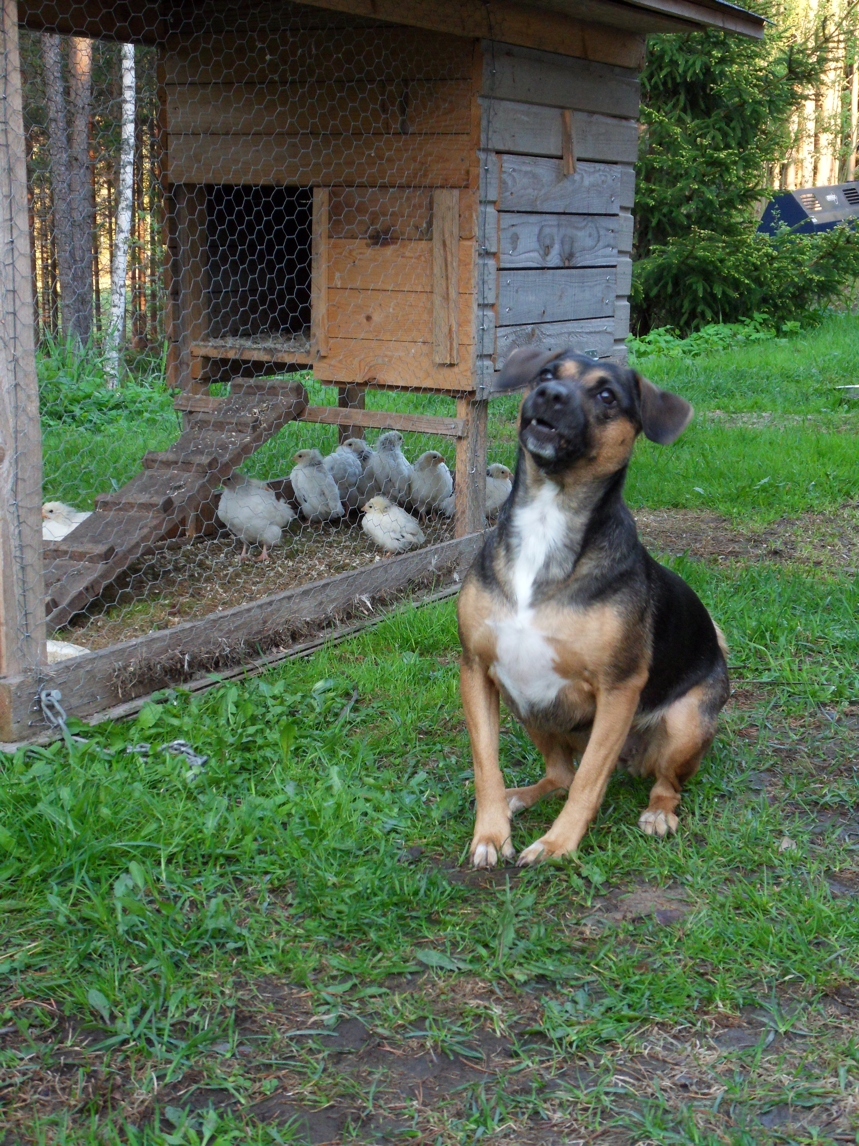 Hon tog sitt uppdrag på allvar, full fart ut med ett skällande som skulle gjort vem som helst rädd, och jagade den flyende, flygande duvhöken ett långt stycke in i skogen. Den har säkert ungar på gång men mina höns får de inte!