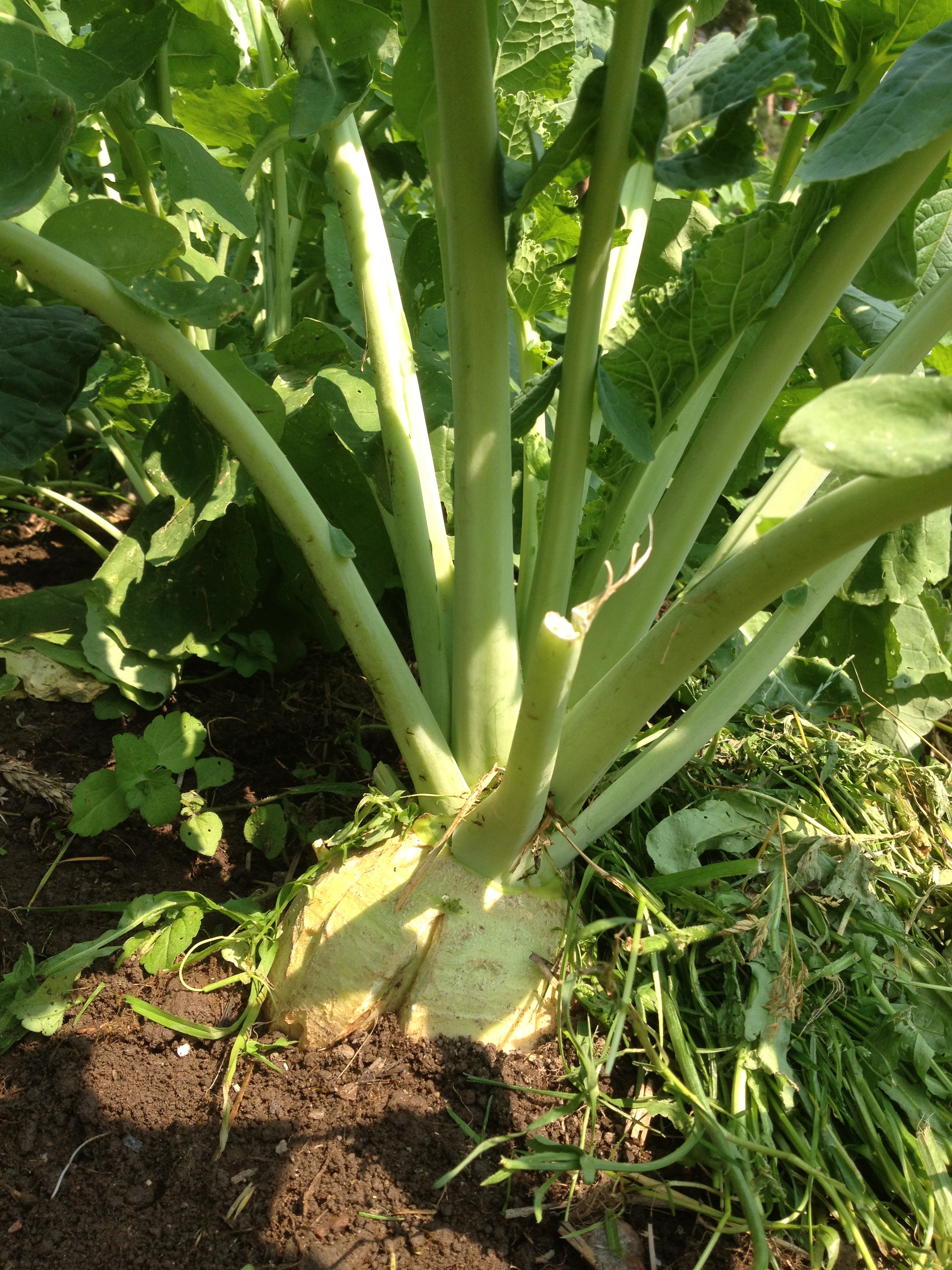 Kålroten Östgöta 2 har vuxit sig stor och stark, dags att ta upp den så den inte blir träig och trist. Jag har sått mer av den som bör bli lagom att ta upp i höst för vinterförvaring.