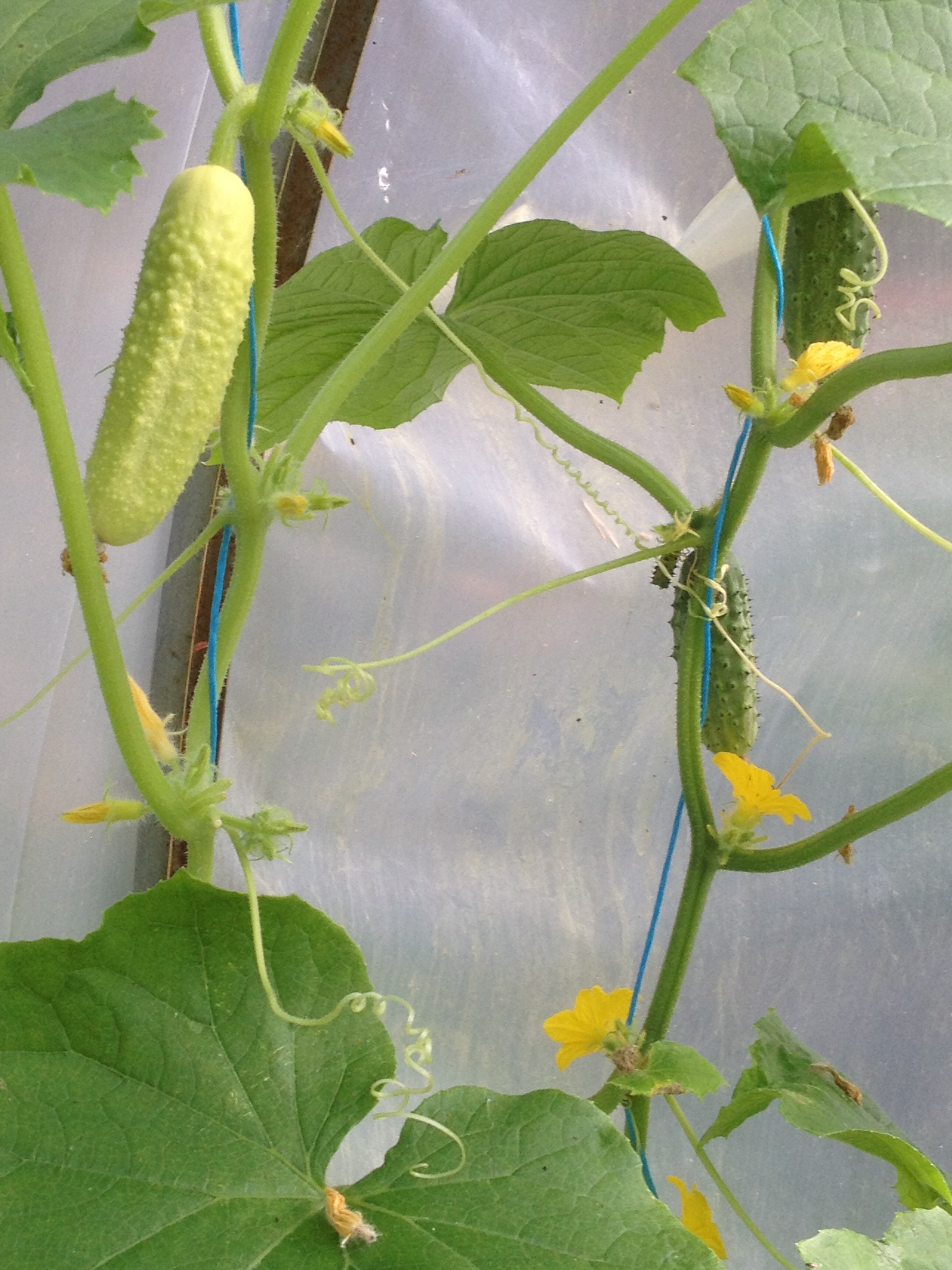 Gurkorna har varit givmilda i år, en massa gröna och vita gurkor har vi fått. Sorterna är den gröna Northern Pickling och Arboga vit, båda från Runåbergs fröer.
