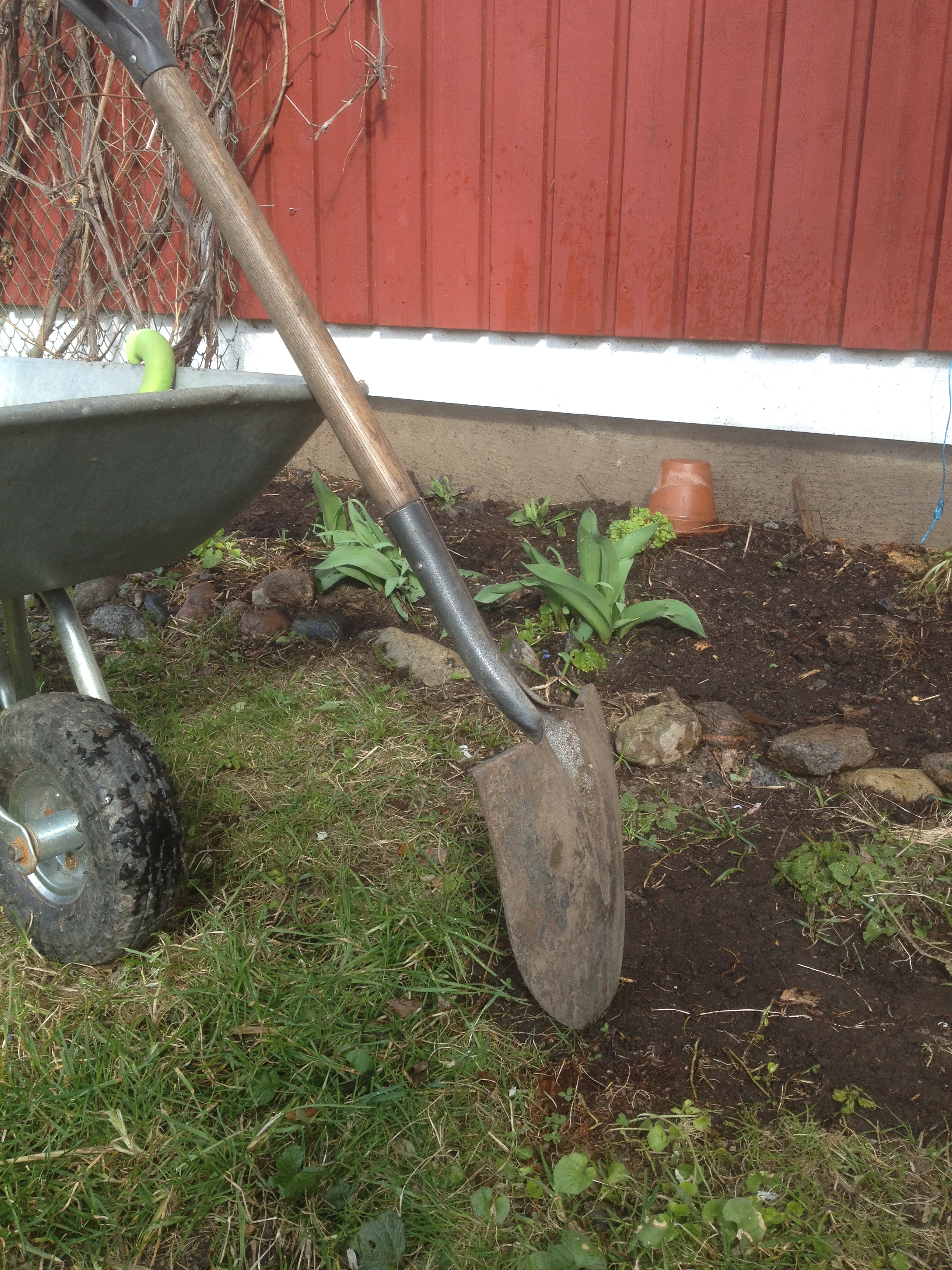 Söndagen tillbringade jag i trädgården. Blomrabatterna och bärbuskar fick lite hönsgödsel.