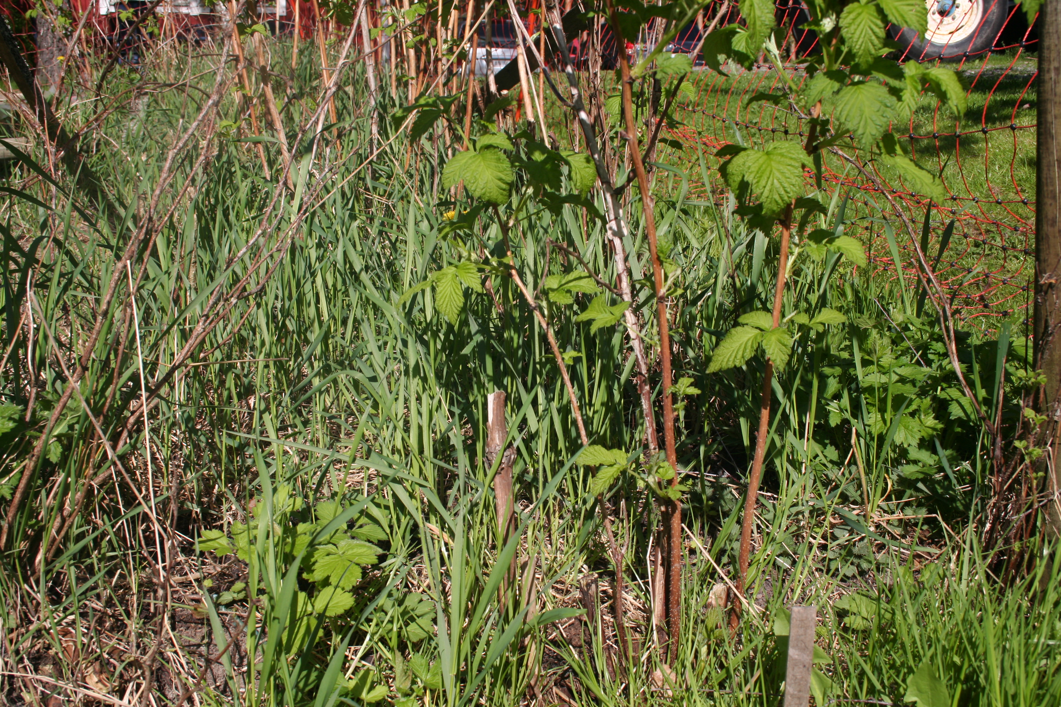 I år blir det inga hallon på de här plantorna men till nästa år ska det förhoppningsvis kunna bli en bra skörd.