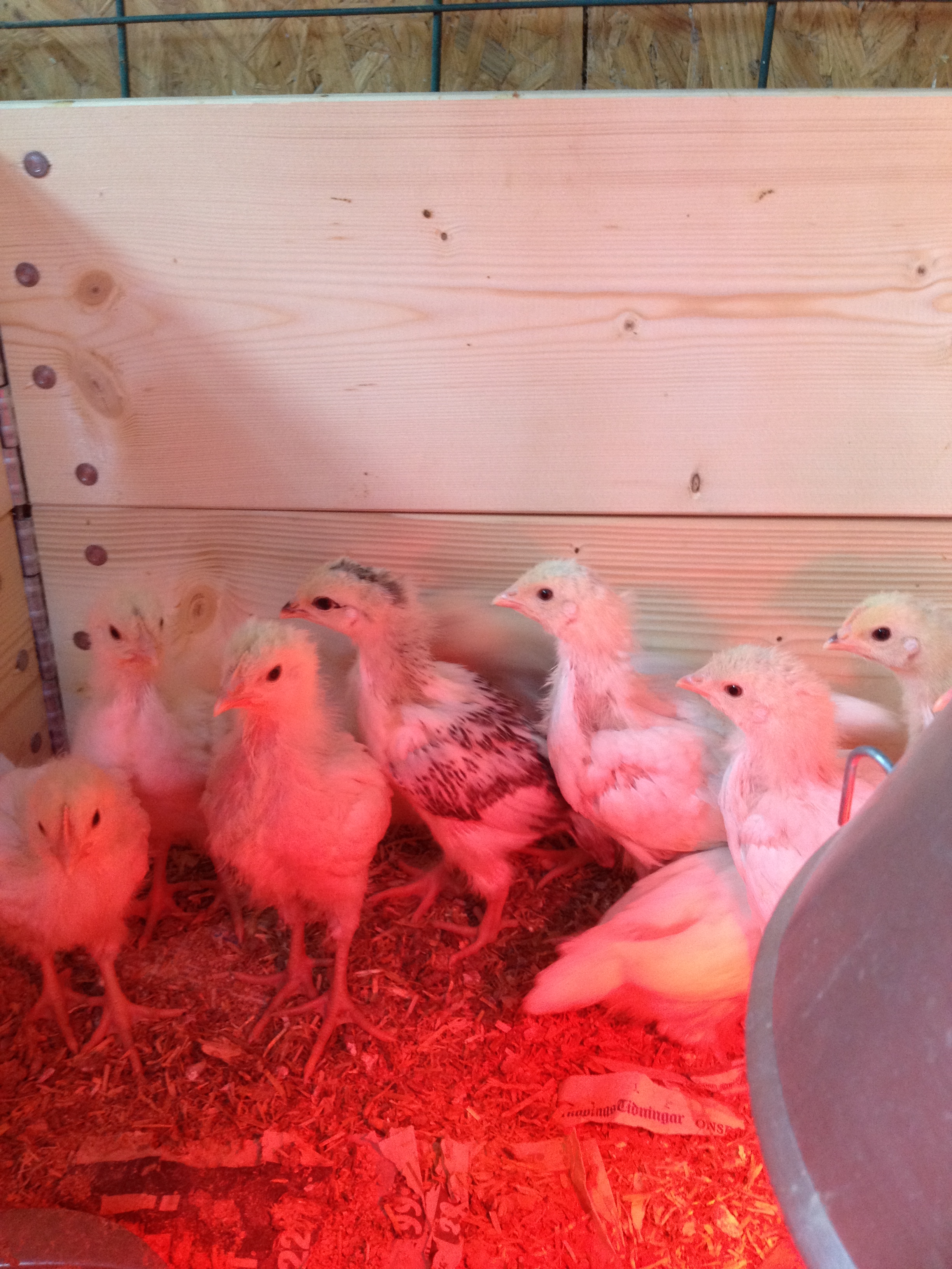 De kycklingar som redan är kläckta är nu strax tre veckor. De växer så fort! Snart har de fjädrar över hela kroppen. De har passerat det där ulliga, gulliga stadiet, med lite dun kvar och lite spretiga fjädrar ser de mest tufsiga ut. Men om någon vecka så är de fullfjädrade.