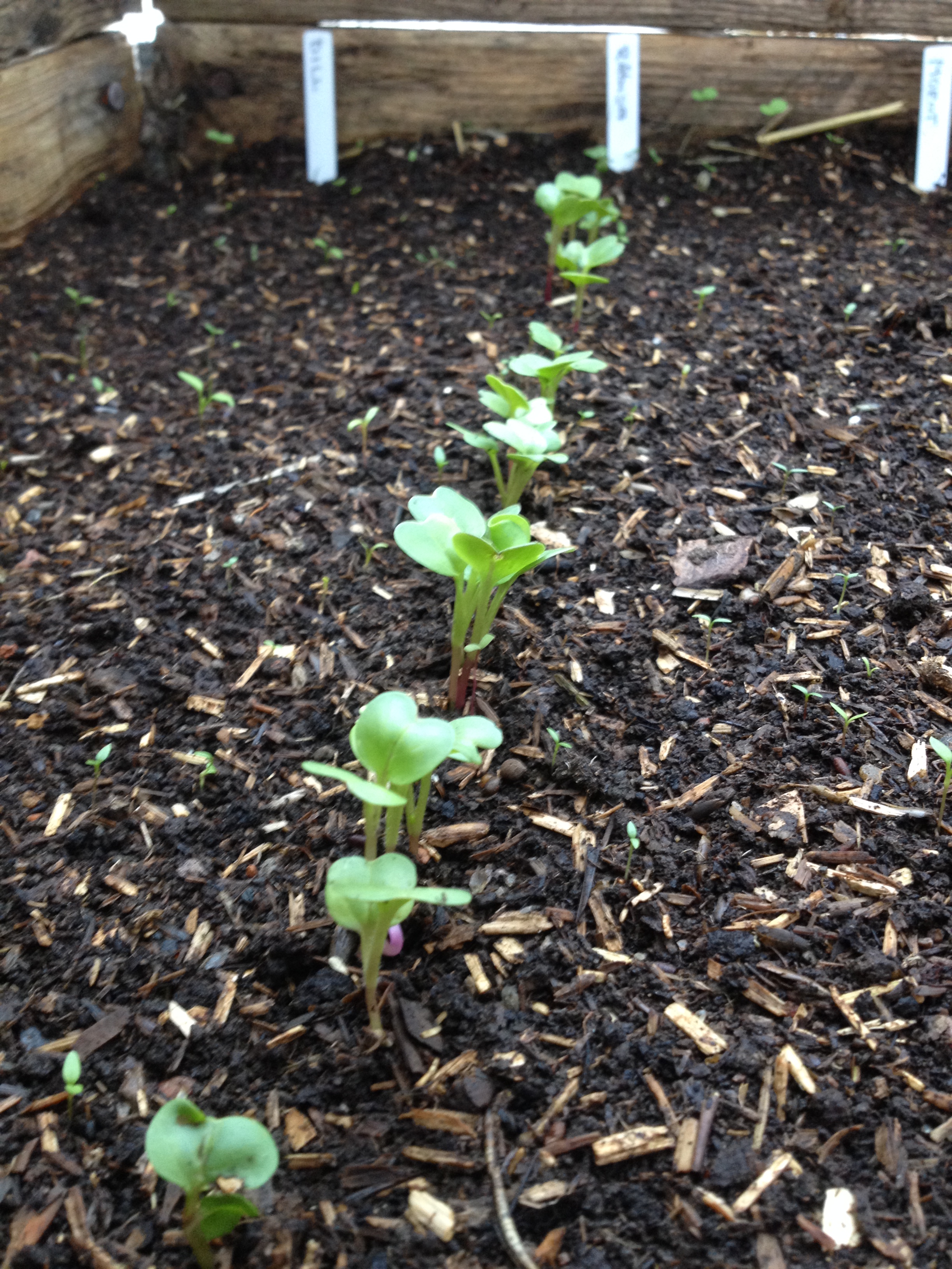 I varmbänken har både rädisor, morötter och plocksallat grott. Dillen tar lite längre tid på sig. Så trots att bänken inte håller så hög temperatur som jag hoppats på är jag nöjd, det växer ju!
