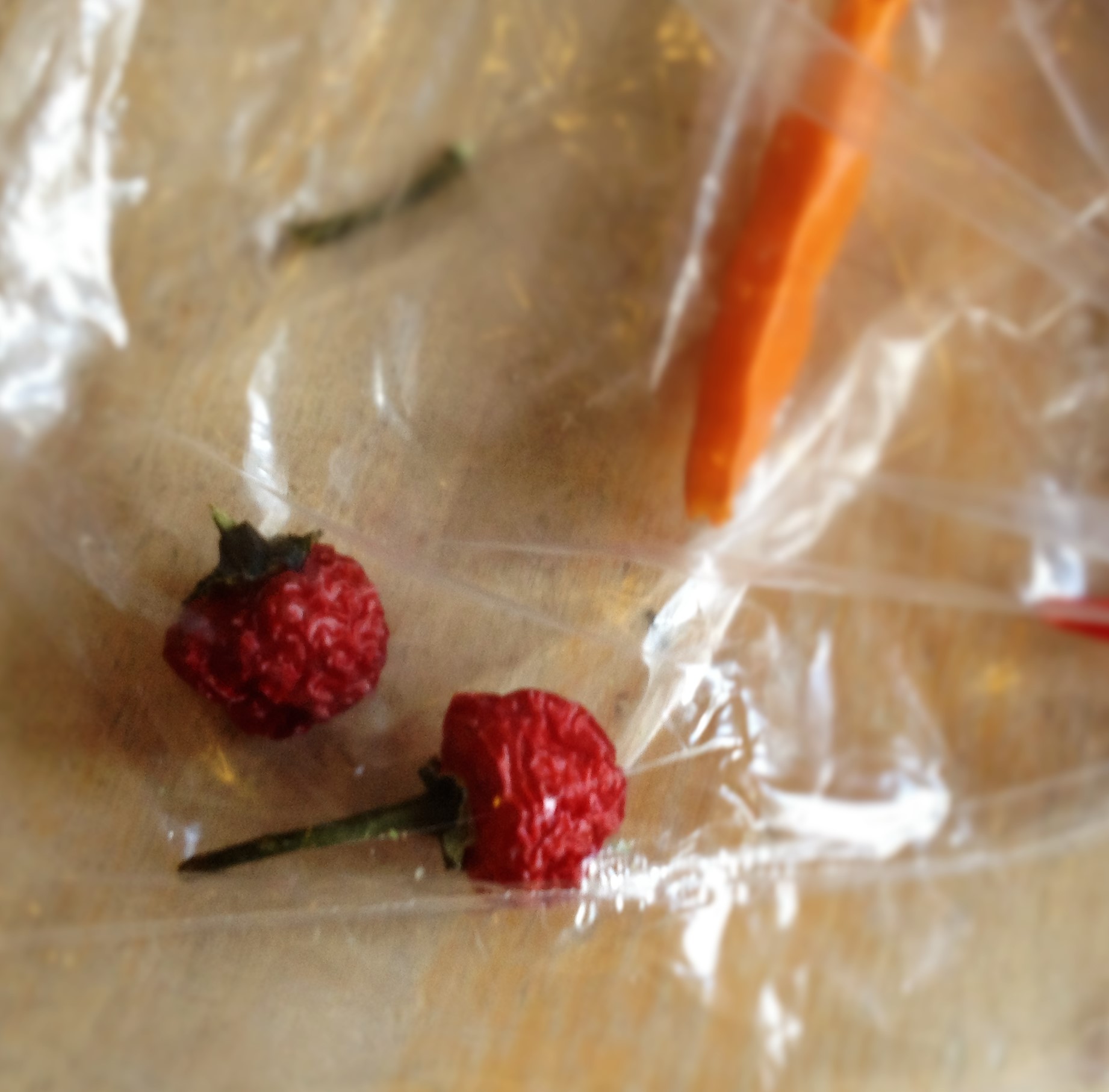 Den ena heter Trinidad moruga scorpion och visade sig efter en googling vara en av de starkaste chilisorterna i världen! Den hamnar runt 1,6 miljoner på scoville skalan, individuella plantor kan komma upp till 2 miljoner. Paprika hamnar mellan noll och hundra på scoville skalan , jalapeño mellan 2500-8000. Jag kommer inte att odla den lilla Trinidad, vi har ju småbarn som gärna skördar i trädgården..