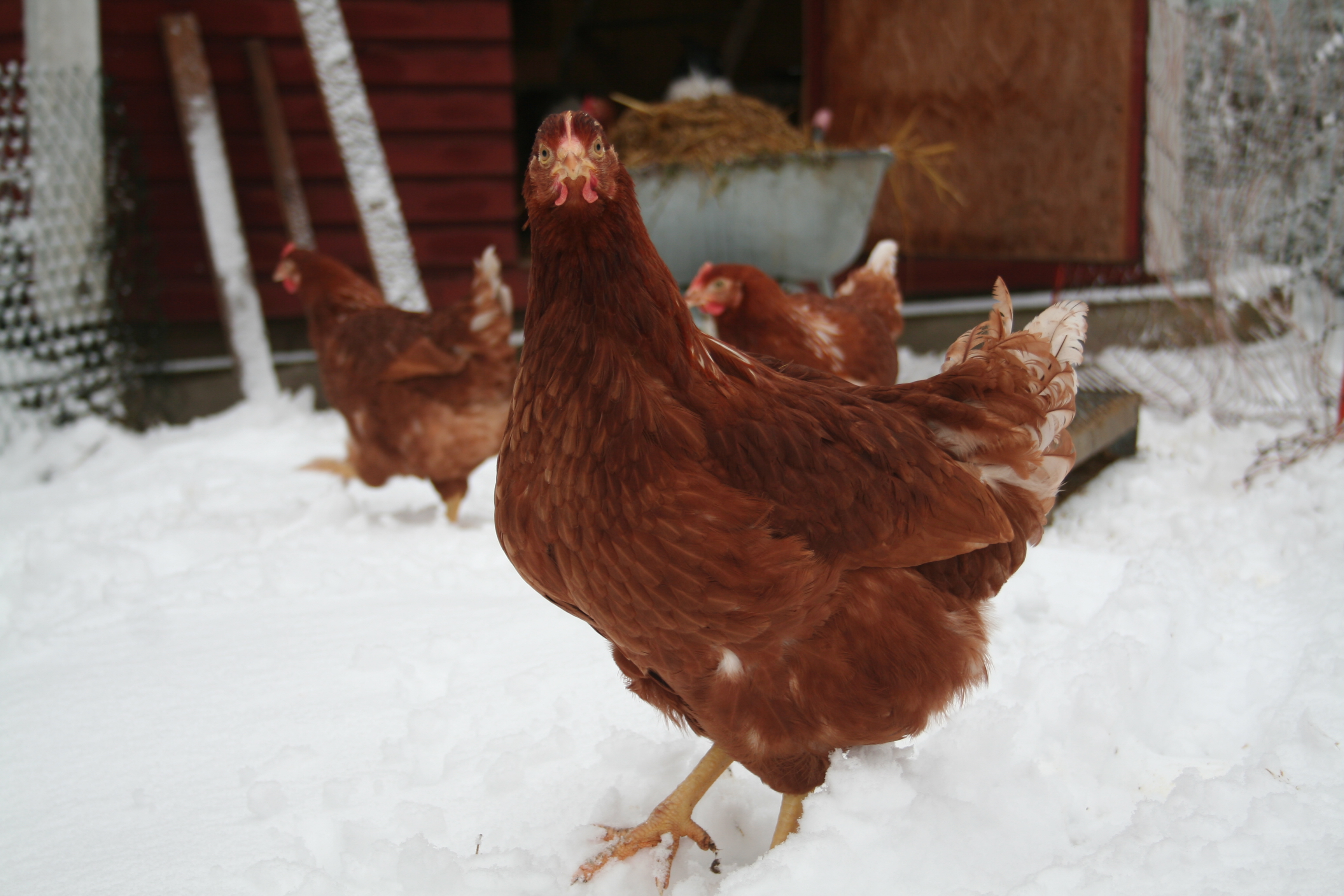 Idag när temperaturen låg runt nollan passade jag på att göra rent hos hönsen. Hönorna är lite skraja för att gå ut i det kalla, vita och det brukar vara lättare att få ut dem ur huset när det inte är isande kallt ute.