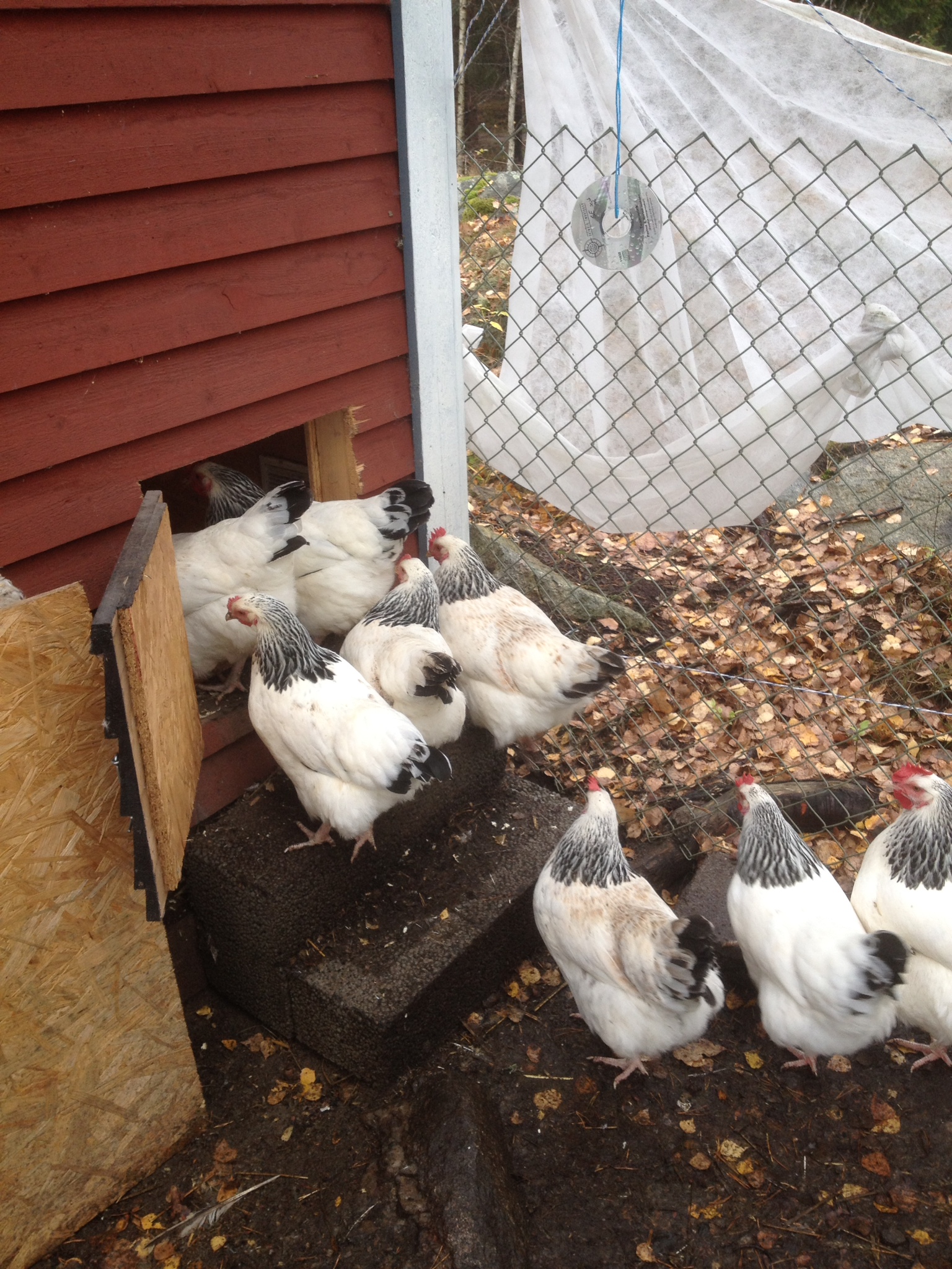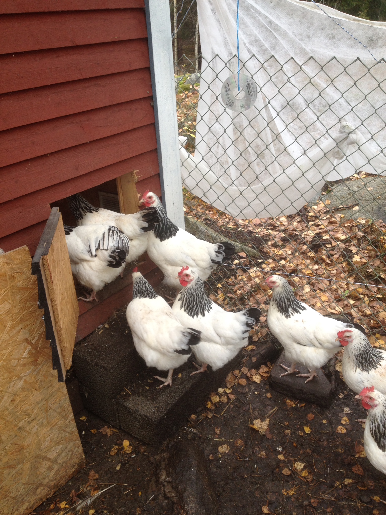 7 hönor har jag kvar, 3 brun Lohman, 1 vit Lohman och 3 sussexhöns. På eftermiddagen efter stora hönsdöden, ringde jag och beställde 15 nya Brun Lohman. De är leveransklara i luciaveckan och är då 16 veckor. Så de börjar värpa någonstans vid årsskiftet.