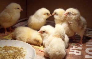 På vårarna kläcker vi fram kycklingar i äggkläckaren eller låta hönsen sköta det själva, så nya höns kommer som vi föryngrar flocken med eller säljer. Av kycklingarna så blir det några tuppar som hamnar i frysen.