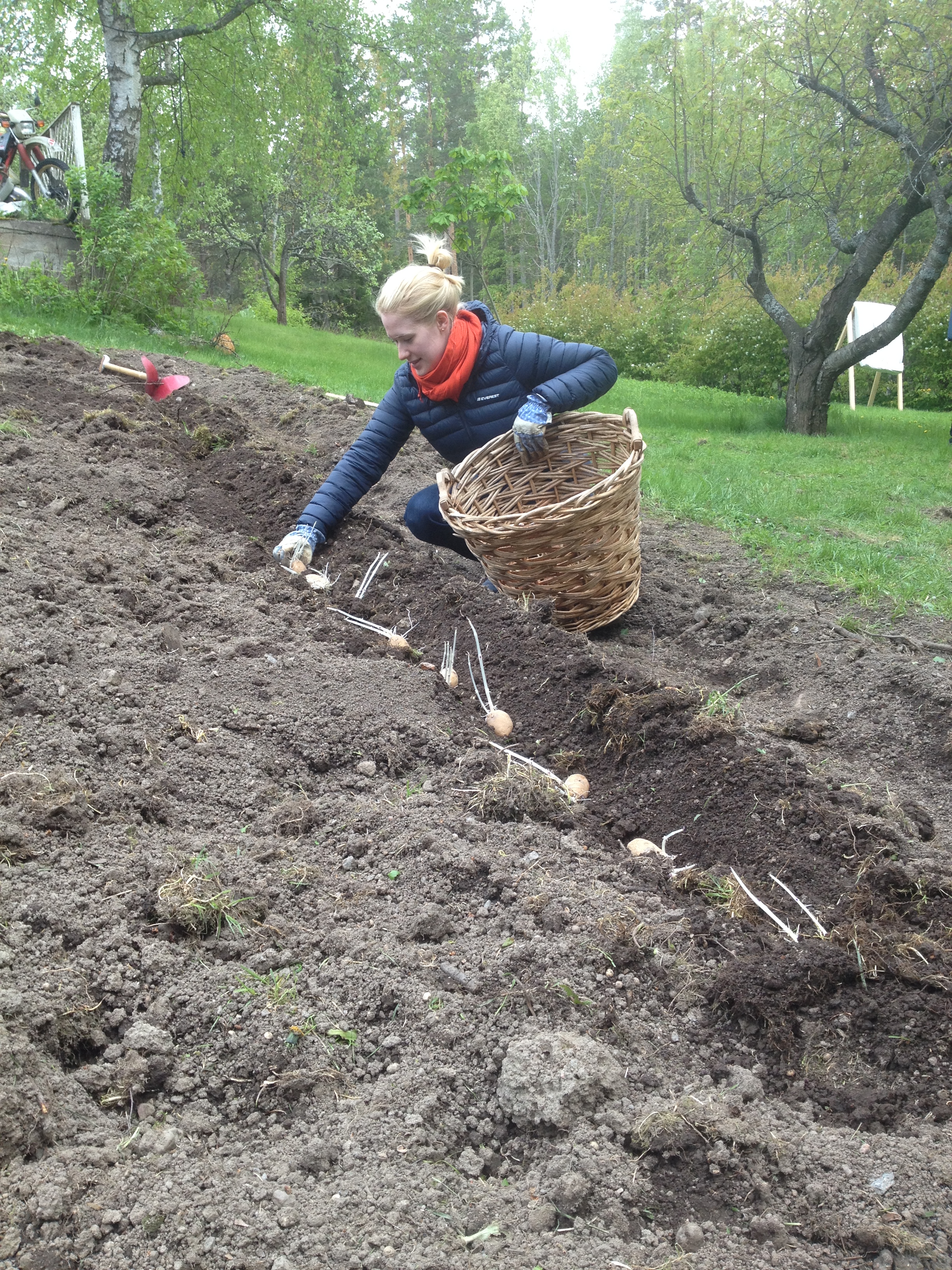 Tidigpotatisen kan stå tätare, den tar vi ju gärna upp tidigt, så den behöver inte lika mycket utrymme som vinterpotatisen.