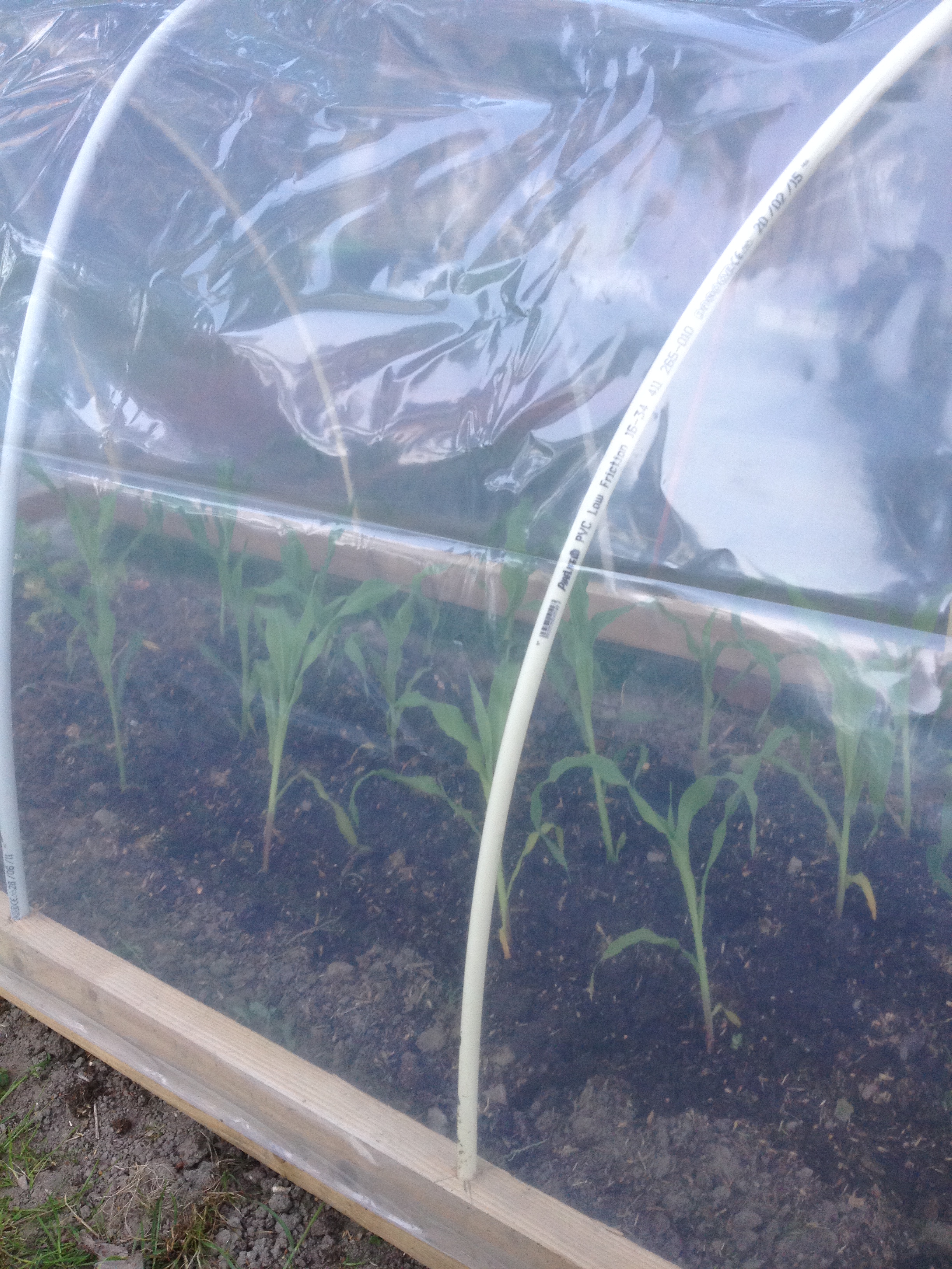 Så nu står den äntligen över majsen som vi planterade ut i veckan. Jag tror de kommer fungera riktigt bra, speciellt när vårarna är som den här, kalla och blöta.
