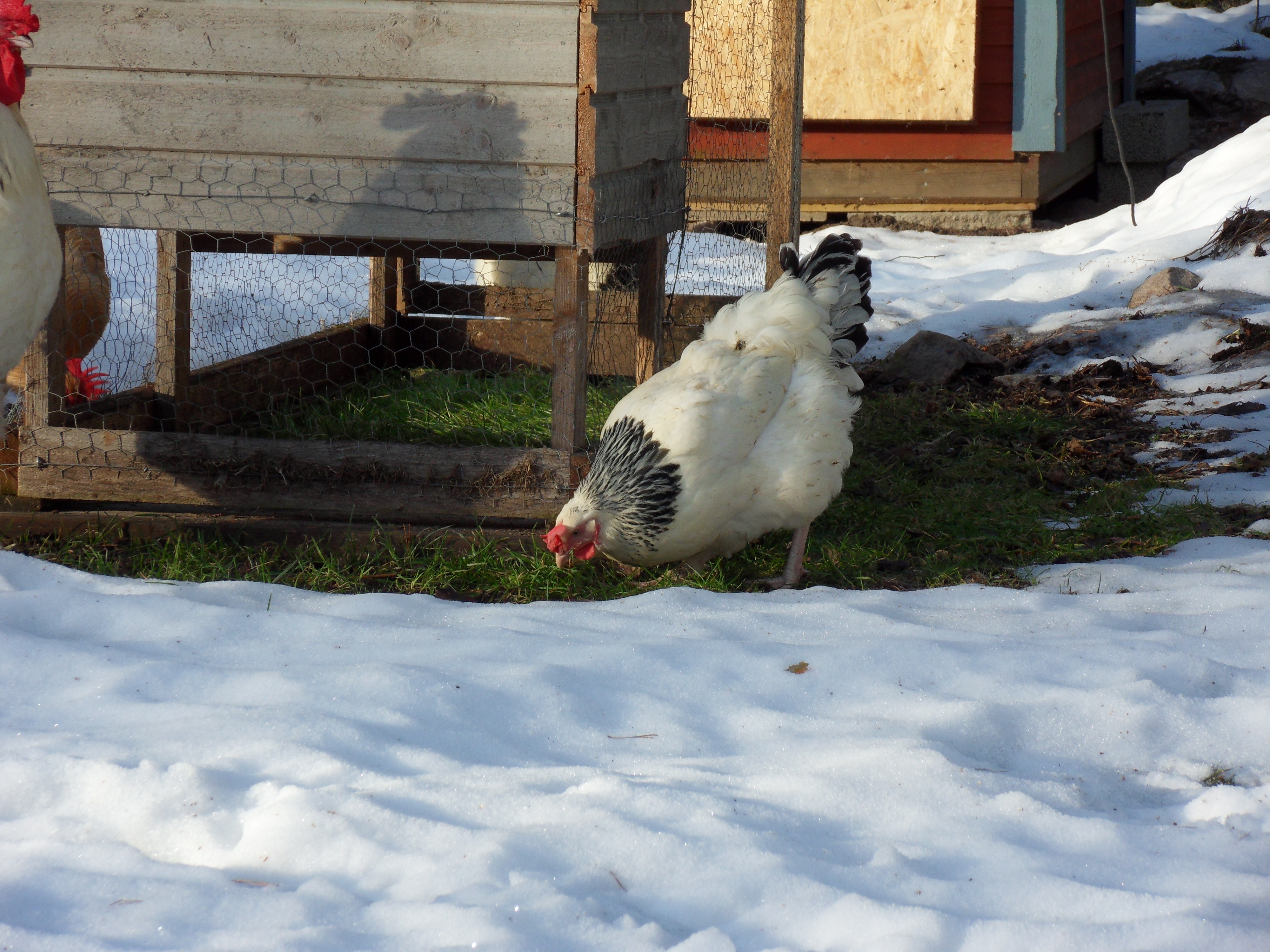 Har man inte lampa ( vanlig lampa, inte värmelampa) hos dem kommer de att minska på värpningen eller inte värpa alls de mörkaste månaderna av året. För att en höna ska värpa max behöver de minst ca 13 timmars ljus/dag. Jag har lampa hos dem, sommartid behövs såklart inget ljus hos dem. I slutet av oktober, november och december har jag bara tänt ca 8 timmar hos dem. Då får de sin viloperiod och ruggar. Sedan ökar jag på ljuset med 15-20 min./dag tills det är uppe i 13 timmar/dag så börjar de sakta värpa igen.